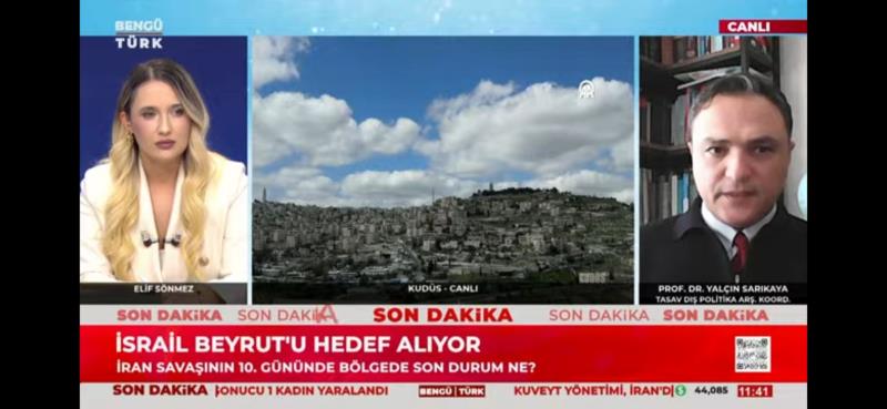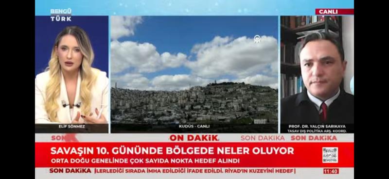 Our Head of the Department of International Relations, Prof. Dr. Yalçın Sarıkaya, joined the Bengü Türk television broadcast live on Monday, 9 March 2026, and commented on the developments on the tenth day of the ongoing war in Iran.