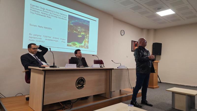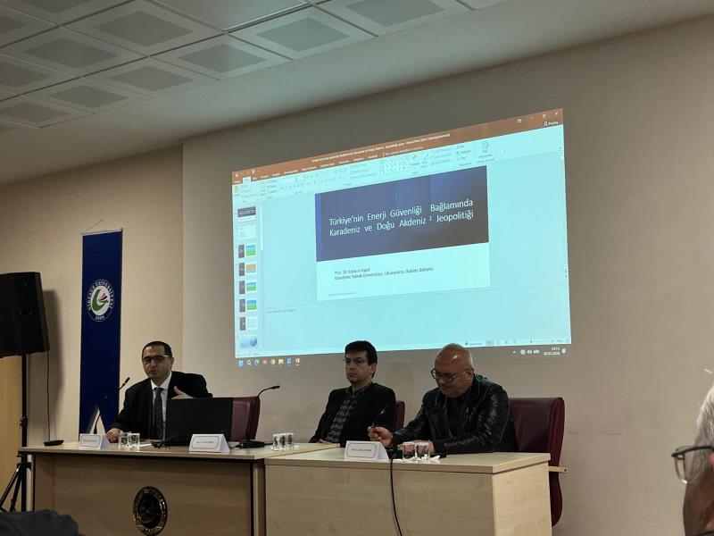 The panel titled “The Impact of Research and Drilling Vessels on Foreign Policy”, organized by the Department of International Relations in collaboration with the Giresun University Strategic Research Society and the Black Sea Strategic Research and Application Center, was held on 26 March 2026 at 14:00 in the Mevlana Hall of the Faculty of Arts and Sciences at Giresun University. The opening speech of the panel was delivered on behalf of the Department of International Relations by Dr. Tolga Çıkrıkçı, Vice Chair of the Department. The panel was moderated by Assoc. Prof. Dr. Cenk Özgen.