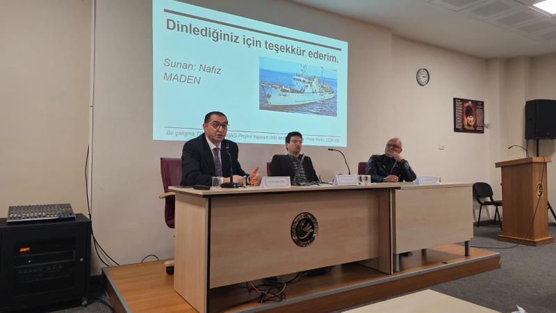 The second speaker, Prof. Dr. Nafiz Maden, presented information on the historical development of drilling and exploration activities from the Ottoman period to the present, supported by documents and visual materials. He highlighted the importance Türkiye attaches to exploration and drilling activities and addressed the technical aspects of these operations. He also emphasized that Türkiye has strengthened its drilling fleet with advanced technologies and has started conducting exploration and drilling activities not only in its own maritime areas but also in the maritime zones of friendly and allied countries.